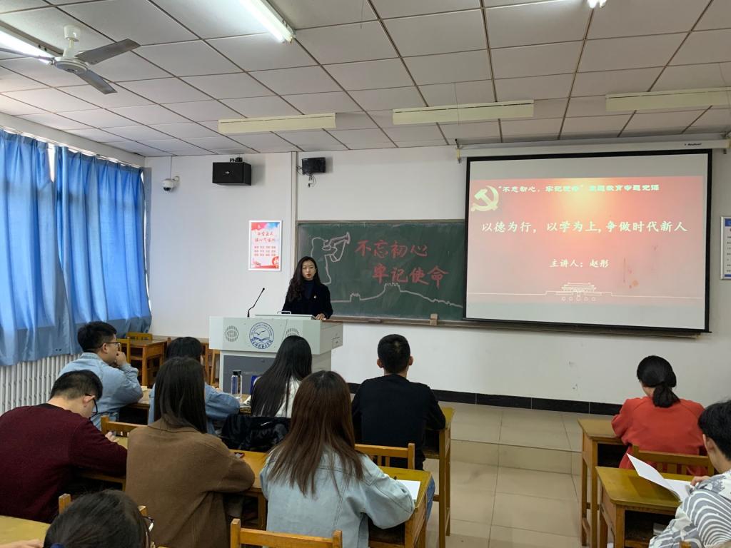 2019年10月31日,304永利集团官网入口信息管理党支部书记为支部党员、积极分子讲授“不忘初心,牢记使命”专题党课。