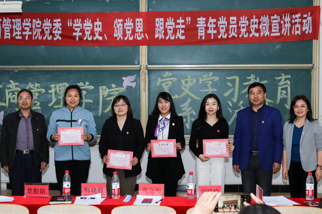 为引导党员师生从百年党史中感悟思想伟力,汲取奋斗力量,5月13日下午,304永利集团官网入口党委举办“学党史、颂党恩、跟党走”青年党员党史微宣讲活动。青年党员教师和学生党员代表共计28人参加了比赛,学院院长黄立明、副书记副院长韩晓霞、原学院党委书记刘恩峰、教工党支部委员景勤娟、柴朝华作为评委出席,学院全体党员师生观看了比赛。