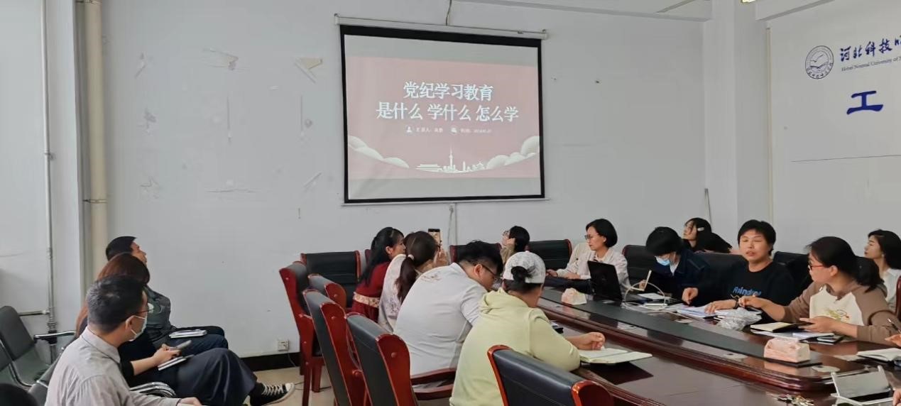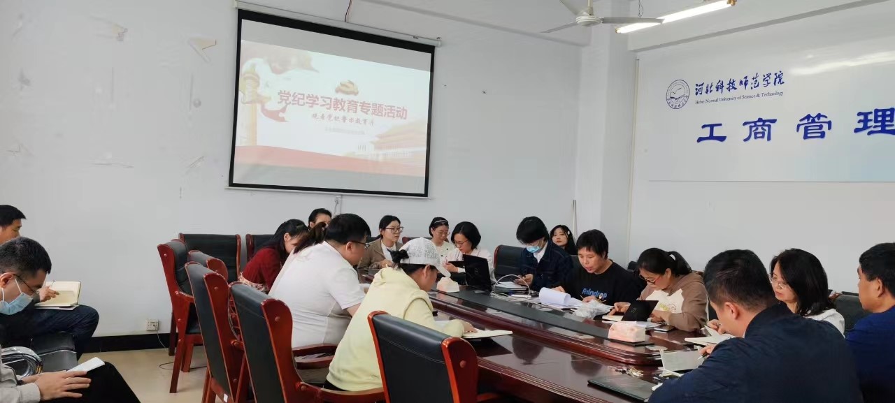 根据《中共河北科技师范学院304永利集团官网入口教工党支部关于开展党纪学习教育的实施方案》,2024年5月7日工商教工党支部在逸夫楼A608进行党纪警示教育学习活动。活动由教工党支部书记高静同志同志主持,304永利集团官网入口班子成员以及全体教职工党员参加本次学习活动。