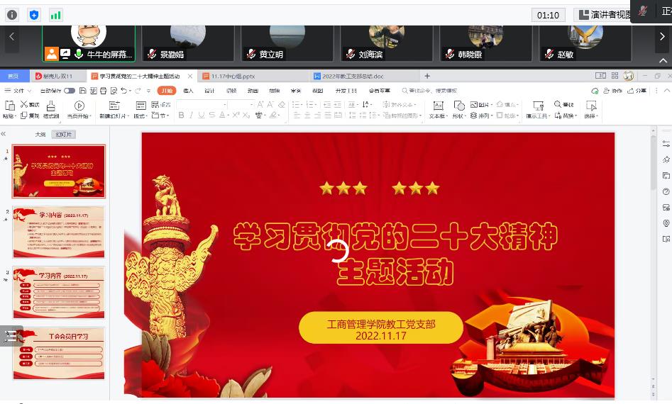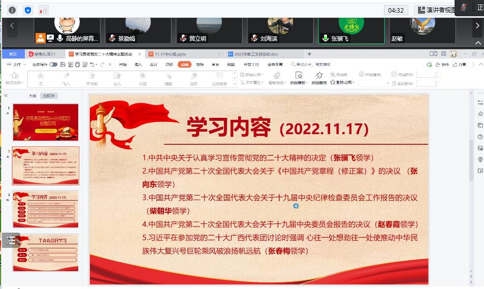 为深入推动习近平新时代中国特色社会主义思想和党的二十大精神入脑入心,迅速掀起学习宣传贯彻党的二十大精神的高潮,11月17日下午,304永利集团官网入口教工党支部在腾讯会议举行了党的二十大精神主题学习活动。