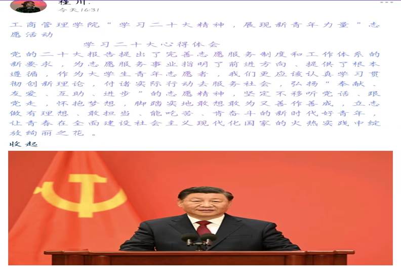 304永利集团官网入口青年志愿者协会向学院青年志愿者发起倡议,号召志愿者积极学习贯彻党的二十大精神,学院青年志愿者以集中和分散两种形式开展学习,并将学习心得在新媒体平台分享,志愿者表示,“党的二十大报告提出了完善志愿服务制度和工作体系的新要求,为志愿服务事业指明了前进方向、提供了根本遵循,作为大学生青年志愿者,我们更应该认真学习贯彻创新理论,付诸实际行动去服务社会,弘扬“奉献、友爱、互助、进步”的志愿精神,坚定不移听党话、跟党走。”