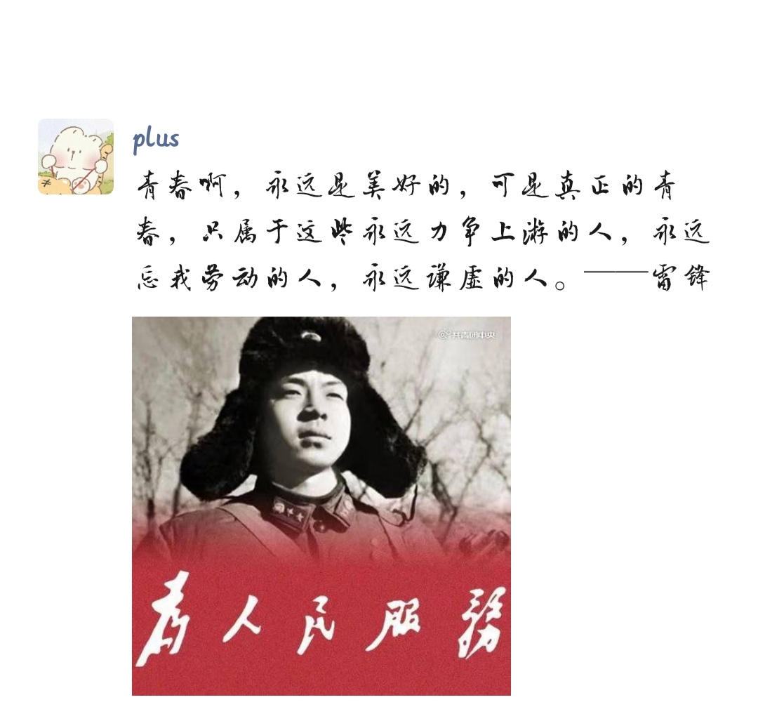 本次志愿活动的内容为永利集团官网青年志愿者充分运用新媒体交流互动平台,记录本人或身边人的学雷锋精神,通过转发与雷锋精神有关语录、故事等,以此来致敬默默无闻、无私奉献、不求回报的英雄人物,并将学习雷锋精神等理念影响更多的青年。本次活动使广大学生加深了对继承和弘扬雷锋精神的理解,通过内化于心,使其外化于行,从而转化为自觉的行动。