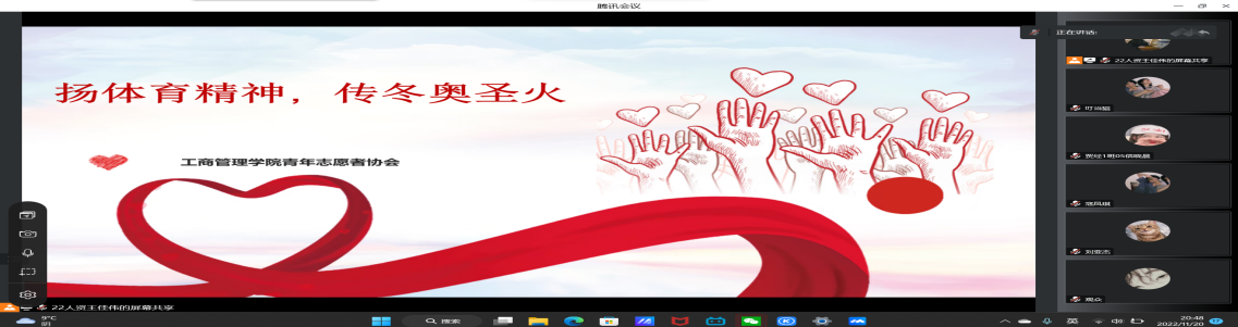 为了学习与传播冬奥志愿者精神,2022年3月20日,304永利集团官网入口开展了“传冬奥圣火,扬志愿精神”志愿活动。永利集团官网组织志愿者通过线上交流的形式分享冬奥志愿者精神心得体会。