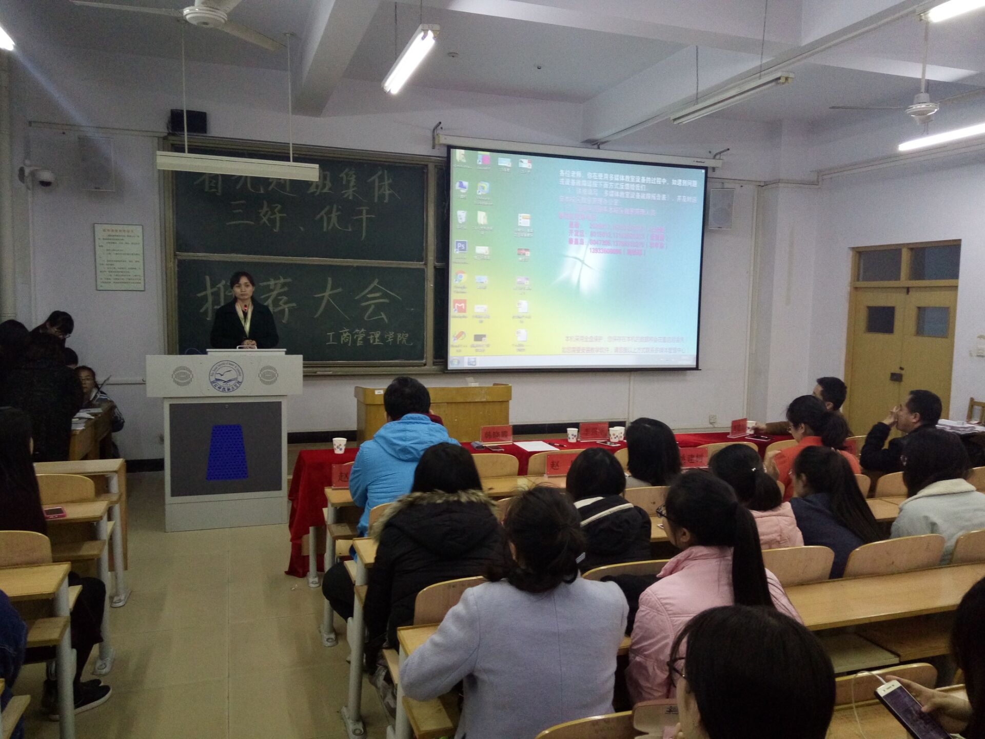 最后,学院领导对各参评个人和集体作了点评,并提出希望,希望推荐上来的个人和集体做好表率,未成功的不要气馁,继续努力提高,在场观摩的个人和班级以各参评个人和集体为榜样,明确学习目标,提高综合素质。