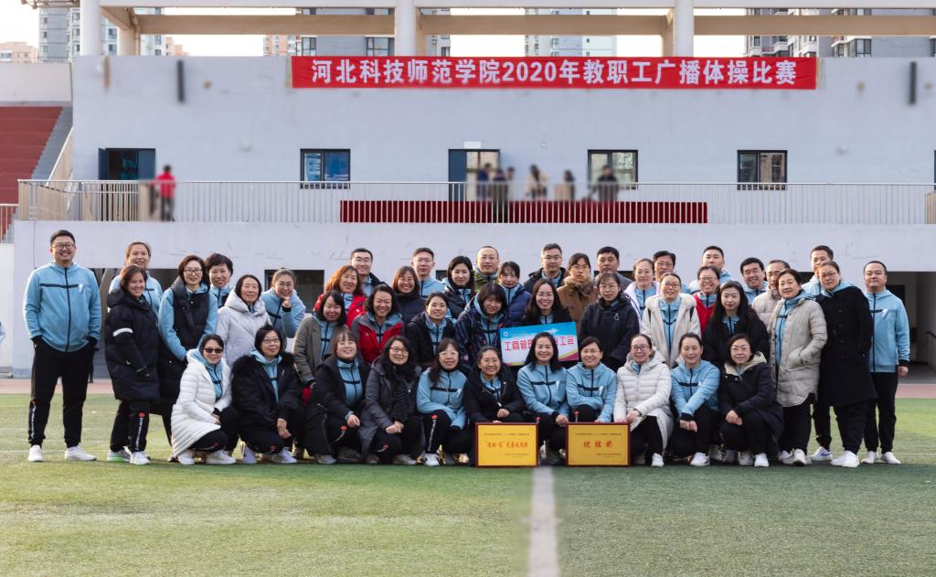 2020年11月26日,河北科技师范学院2020年教职工广播操比赛在操场拉开帷幕。304永利集团官网入口分工会在秦皇岛校区12支参赛队伍中脱颖而出,分别获得了“比赛优胜奖”及“运动·家”元素风尚奖。