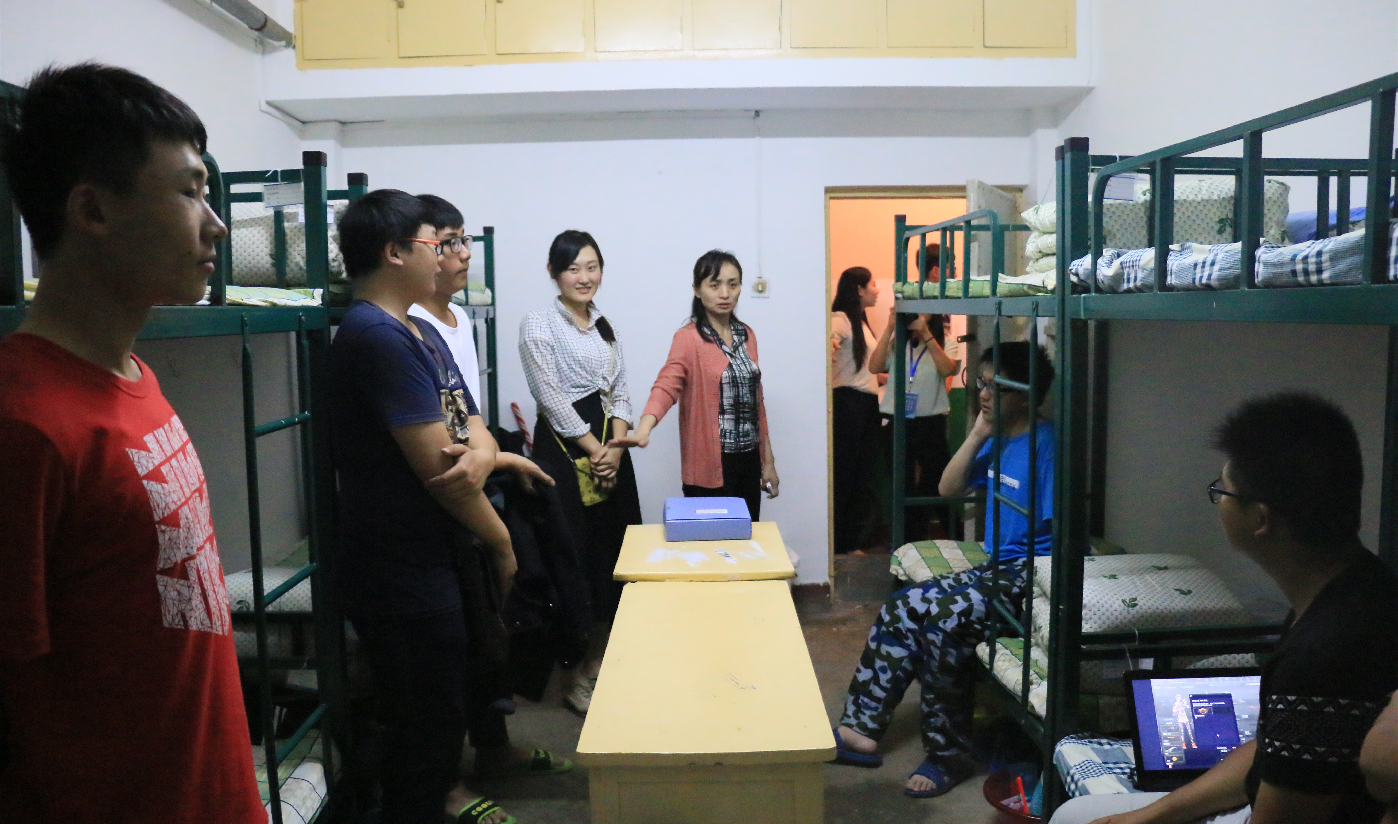 9月24日晚上7点,304永利集团官网入口党委书记刘恩峰、院长侯金柱、党委副书记副院长李强华、副院长黄立明在全体辅导员老师的陪同下到学生宿舍一一看望慰问2015级新生,向新生带去中秋祝愿。