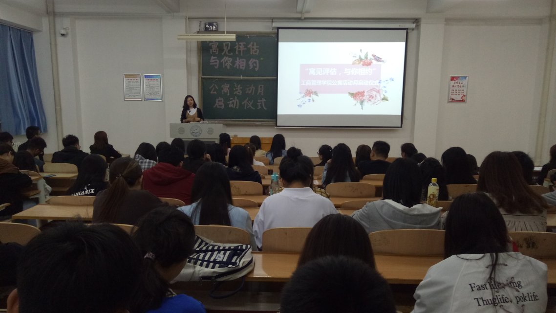 为迎接审核评估,贯彻落实审核评估学生工作动员会会议精神,深入推进学生公寓和谐文明建设,2018年5月4日19:30,304永利集团官网入口“寓见评估,与你相约”公寓活动月启动仪式在逸夫楼B401举行。学生工作负责人、学工办老师、全体宿舍长参加了活动。