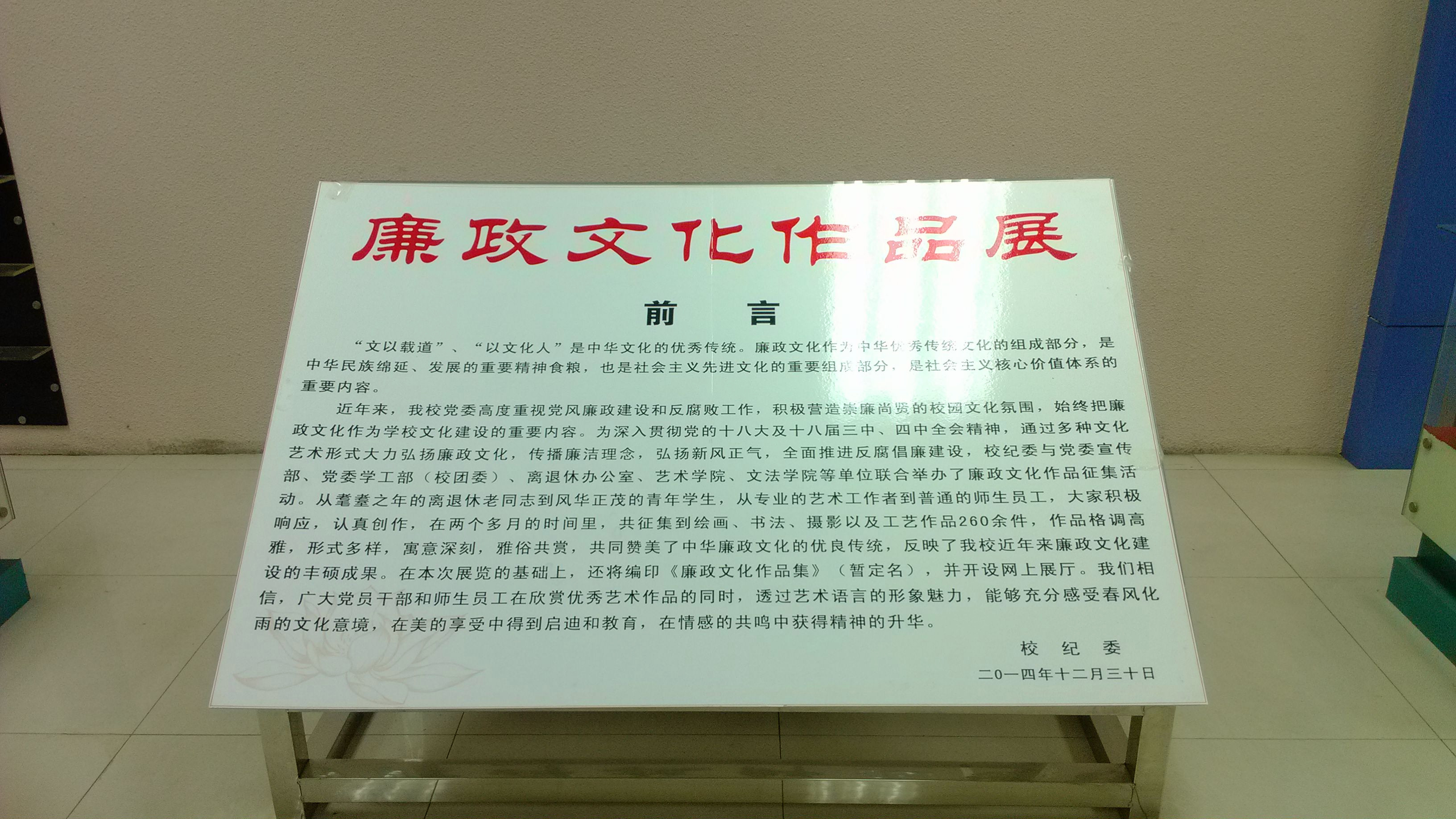 2015年4月2日下午,304永利集团官网入口组织全体党员参观了我校首届廉政文化作品展。作品展主要包括绘画、书法、摄影,各类优秀作品都以其独特角度展现了廉政主题。通过参观,党员们受到了一次较好的廉政教育,进一步领悟了廉政文化的内涵。