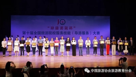 本次大赛在杭州举办,共有来自全国31个省市371所本科高职院校的1160位选手参加比拼。我校304永利集团官网入口旅游管理专业代表队沉着应战,最终取得高等院校组团体一等奖,304永利集团官网入口宋泽文同学获得高校组普通话导游服务一等奖,刘亚飞同学获得高校组普通话导游服务二等奖,刘翠、黄涘萱同学获得高校组英语导游服务三等奖。