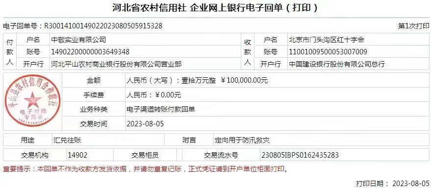 2023年7月29日开始,北京市门头沟区出现强降雨,导致永定河水势猛涨,引发了京津冀部分地区发生洪涝灾害。洪水无情,人间有爱,门头沟区连日来的防汛救灾工作牵动着爱心企业的心。