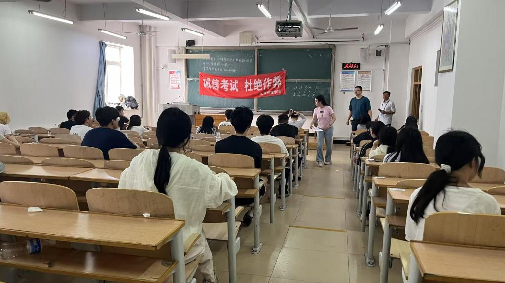 为顺利完成期末考试工作,学院及时转发教务处关于考试的通知,并确保通知到每位学生及主监考教师。通过学院会议认真传达教务处下达的关于考试的文件精神,要求每位监考教师认真履行监考职责,熟记监考注意事项,认真查阅自己的监考场次及时间地点,有问题的及时处理解决;考试时,为确保监考教师及时到岗,学院要求每位监考教师提前上好提醒闹钟,提前15分钟进考场,监考过程中出现不能解决的问题及时与学院进行反馈。期末考试期间学院督导组成员、班子成员及学工办根据考试安排进行合理分工,做到全覆盖巡考,考前、考中分时间段进行监督,确保考试公平公正。