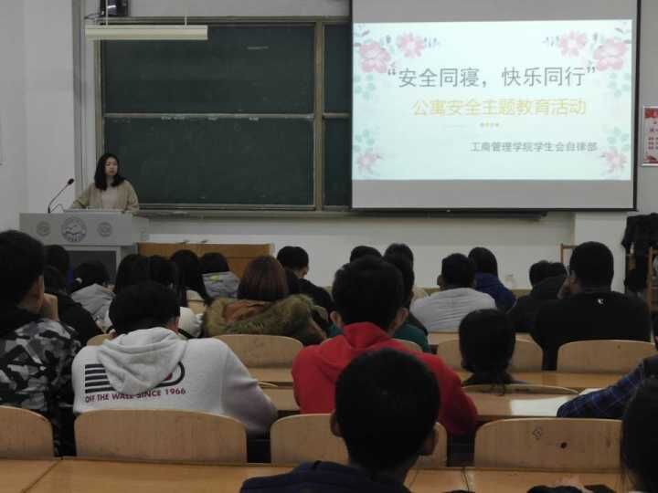 11月14日晚,304永利集团官网入口“安全同寝,快乐同行”公寓安全主题教育活动启动仪式在B301教室举行。304永利集团官网入口公寓管理负责人、学生会自律部成员、各班班长及生活委员参加了启动仪式。