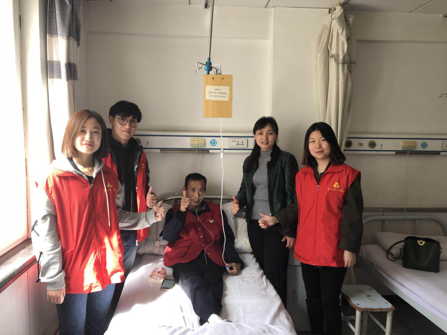 2018年4月13日,得知沈如波同志生病住院后,304永利集团官网入口师生志愿者立即组织起来,利用周末时间到医院陪护、照顾沈如波同志,带去了我校师生的关怀和祝福。