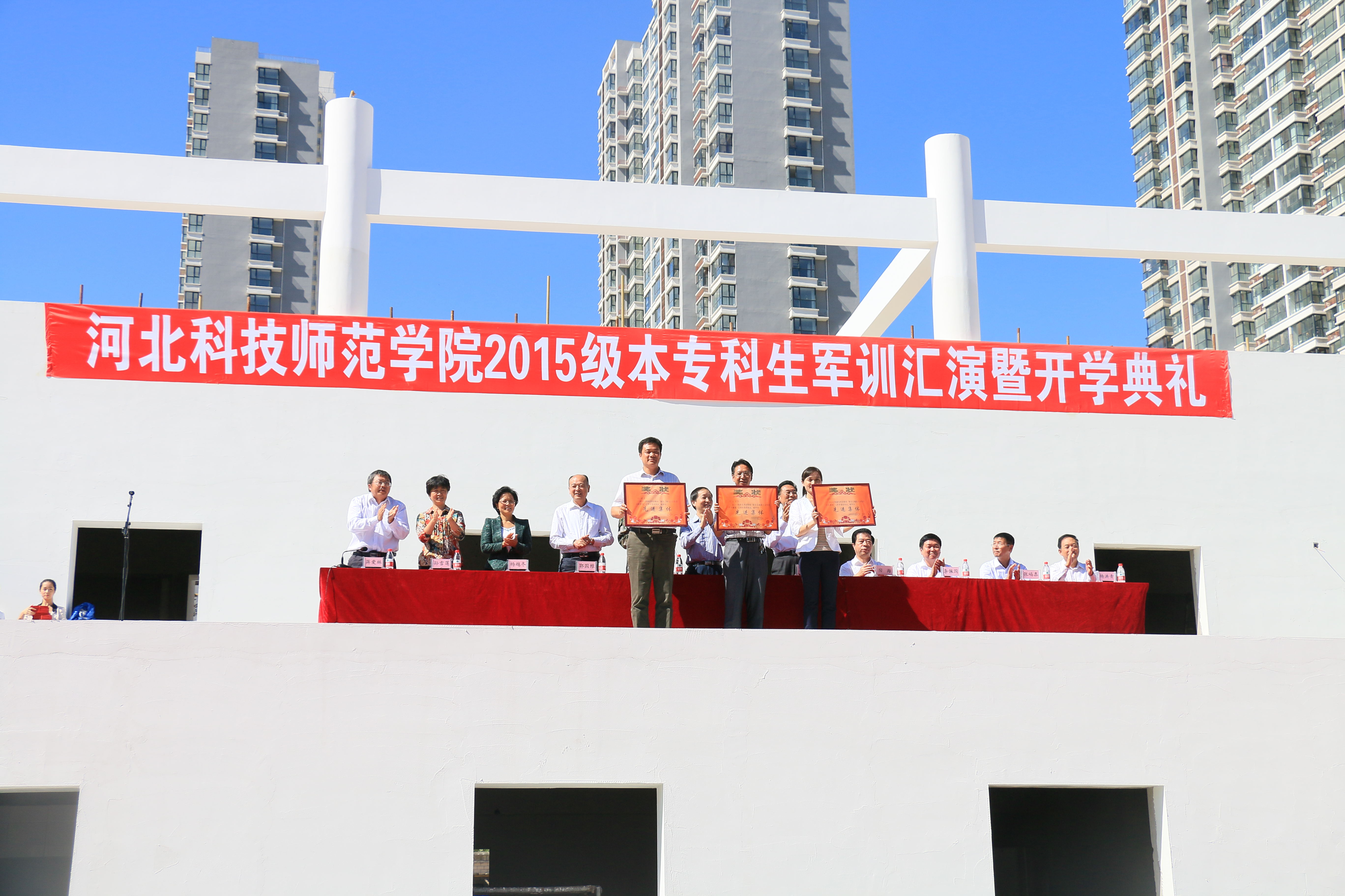 2015年9月26日上午10:30河北科技师范学院秦皇岛校区于后院操场举行2015级本专科生军训汇演暨开学典礼。