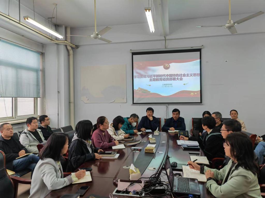 2023425日下午四点,304永利集团官网入口在A608召开学习贯彻习近平新时代中国特色社会主义思想主题教育动员部署大会,学院党政领导班子,全体党员老师参加了会议。
