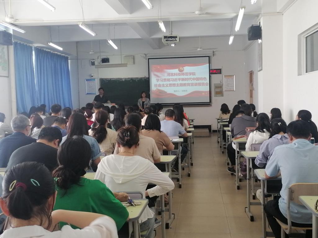 为扎实开展学习贯彻习近平新时代中国特色社会主义思想主题教育,6月15日下午,永利集团官网特邀请学校主题教育宣讲团成员、马克思主义学院副教授刘艳冬老师作“中国式现代化的深刻解读”主题教育宣讲报告会,学院全体教工党员和党员学生代表参加会议,会议由学院党委书记赵敏主持。